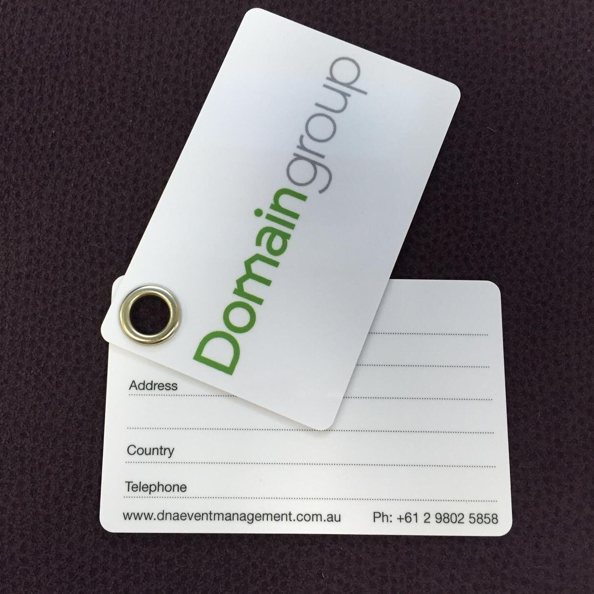 Eyelets can be used to join two plastic cards together – a great idea for Luggage Tags!